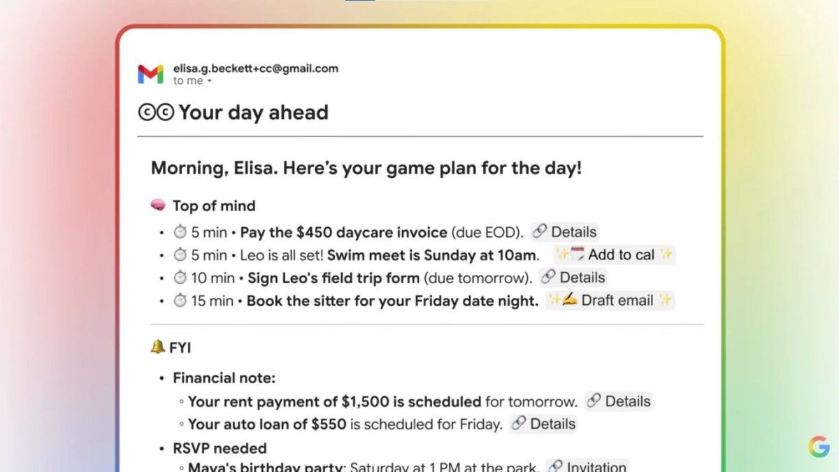 En detalle, CC es un asistente basado en correo electrónico que ya se encuentra en fase de pruebas dentro de Google Labs. La compañía apunta a resolver un problema cada vez más común entre los usuarios de Gmail: el exceso de información dispersa entre correos, eventos y archivos.