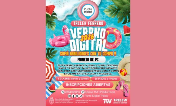 En el marco del programa Verano Digital 2026, la Municipalidad de Trelew, a través del Punto Digital, lanza -con cupo lleno-, el Taller de Manejo de PC, una iniciativa orientada a adquirir habilidades digitales básicas de manera simple, práctica y accesible.