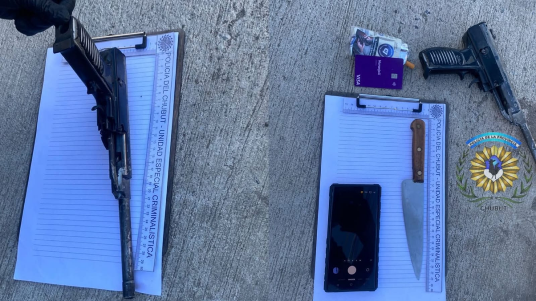 Los uniformados arribaron al lugar y se encontraron con un hombre de características similares a las aportadas por los testigos. Al percatarse de la presencia policial, el individuo arrojó al suelo un arma de fuego de fabricación casera y un arma blanca.