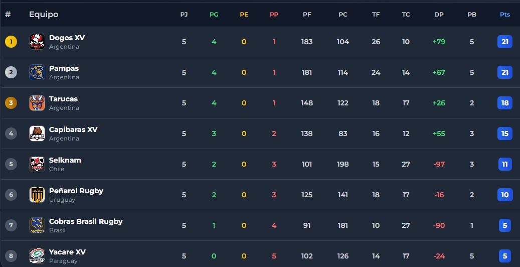 Así quedó la tabla de posiciones del Súper Rugby Américas, tras la fecha 5