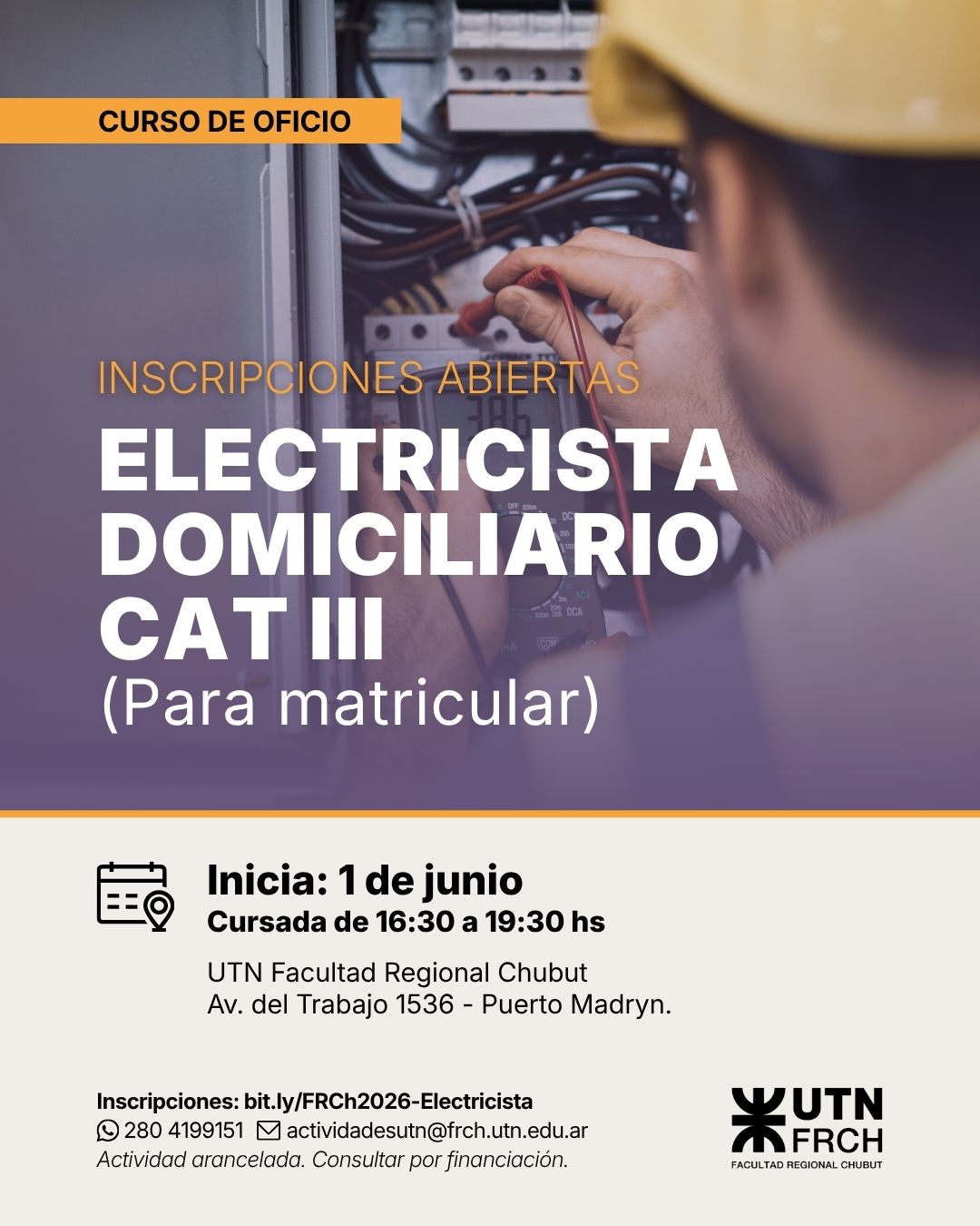 La Facultad Regional Chubut de la UTN lanza cursos con salida laboral y preparación para la matriculación profesional, dirigidos a quienes buscan iniciarse o perfeccionarse en el campo eléctrico.